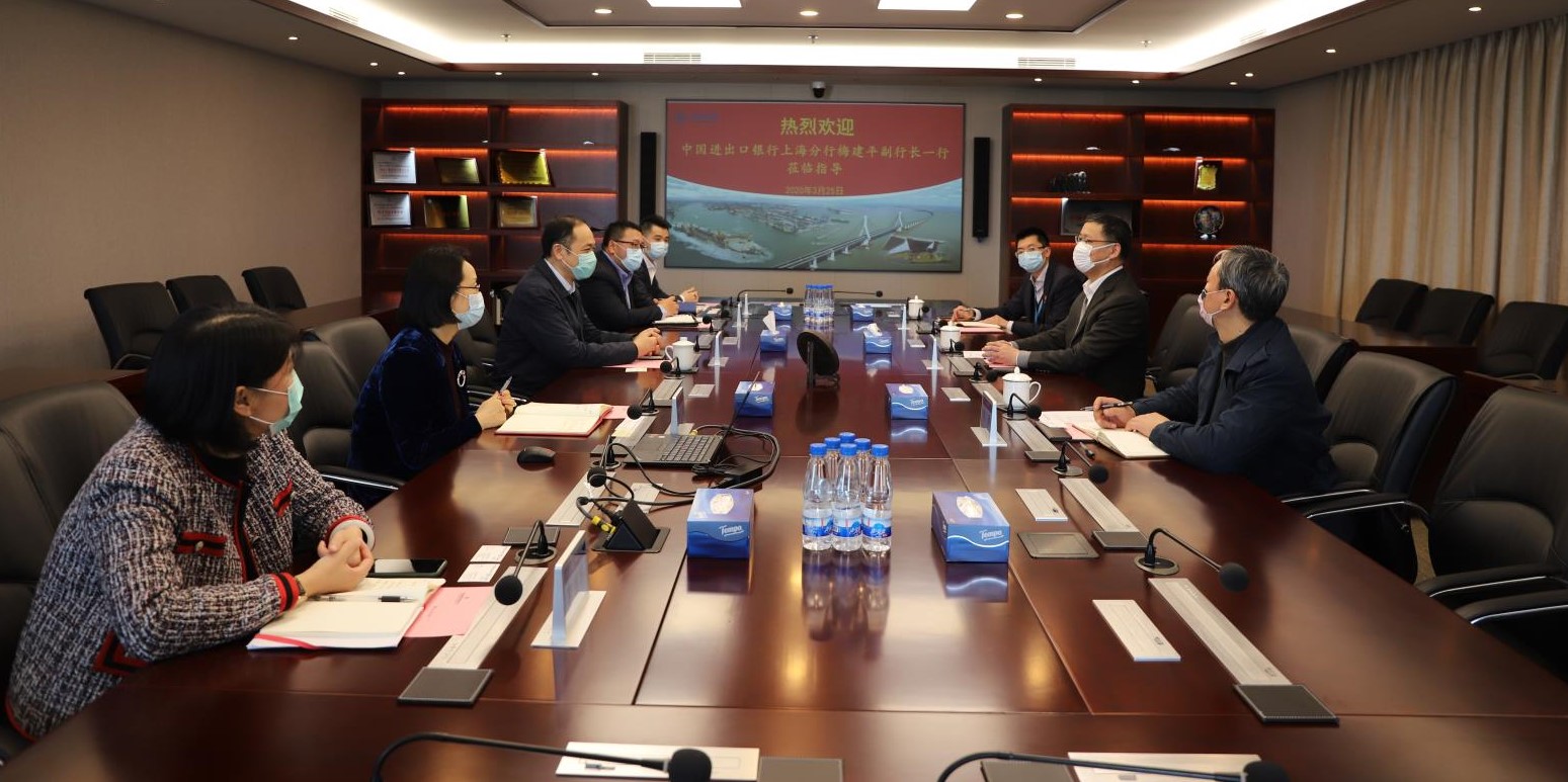 3月25日下午,公司董事长张剑兴会见了来访的中国进出口银行上海分行(以下简称进出口银行)副行长梅建平一行,双方就进一步开展境内外联动合作开展会谈。