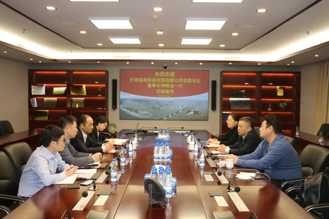 11月6日下午,公司董事长、党委书记张剑兴会见了天津临港投资控股有限公司董事长钟晓龙一行,双方就开展天津港保税区产融合作项目进行会谈。