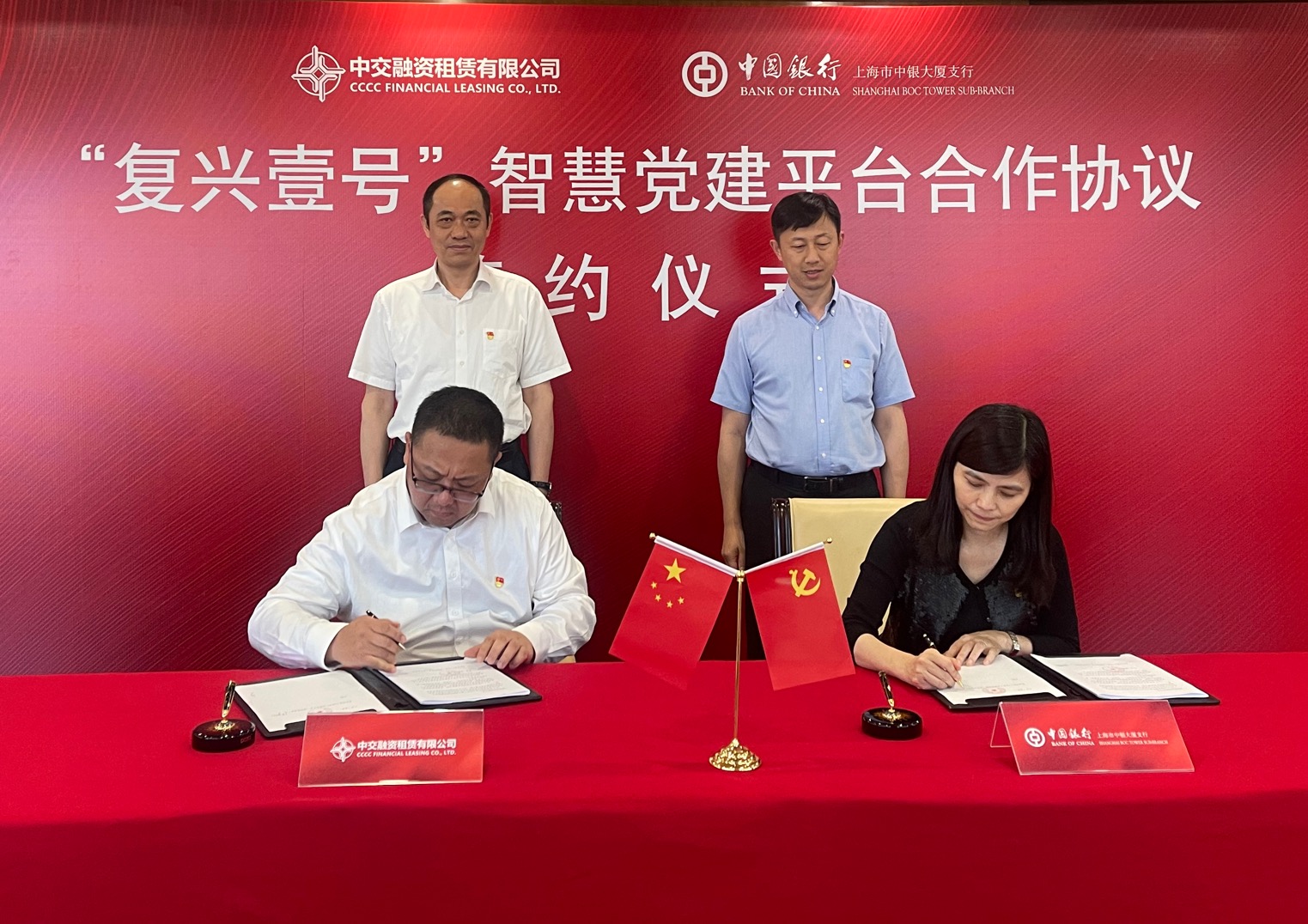 参观活动结束后,中交租赁和中国银行上海市中银大厦支行签订了“复兴壹号”智慧党建平台合作协议。双方约定,以此为契机,不断创新党建形式,共享党建资源,通过“互联网+党建”智慧平台的建立,把互联网功能迭代的方向与基层党组织和党员的需求紧密联系在一起,搭建起线上线下互融互促的“智慧党建”新场景,构建“携手抓党建,智慧促党建”的党建生态圈。